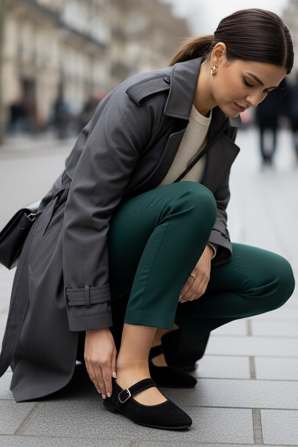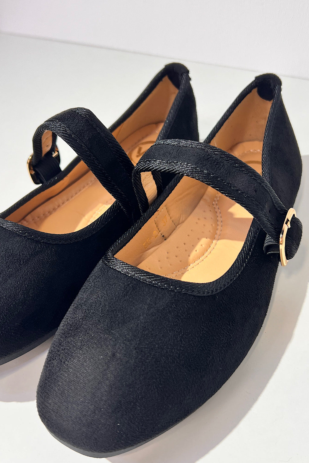 La bailarina Noir Muse combina elegancia, comodidad y estilo atemporal en una silueta inspirada en las clásicas Mary Jane. Confeccionada en suave acabado aterciopelado, presenta una fina pulsera ajustable con hebilla dorada que realza su diseño minimalista. Su plantilla acolchada aporta confort en cada paso, convirtiéndola en la opción ideal para el día a día o para dar un toque refinado a cualquier look. Una pieza versátil que eleva con sutileza cualquier outfit.